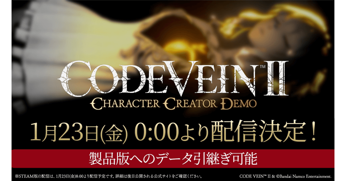 バンダイナムコエンターテインメントは、新作アクションRPG『CODE VEIN II』のキャラクターカスタマイズ体験版を、2026年1月23日より配信することを発表した。対応ハードはPlayStation 5、Xbox Series X|S、そしてSteamだ。