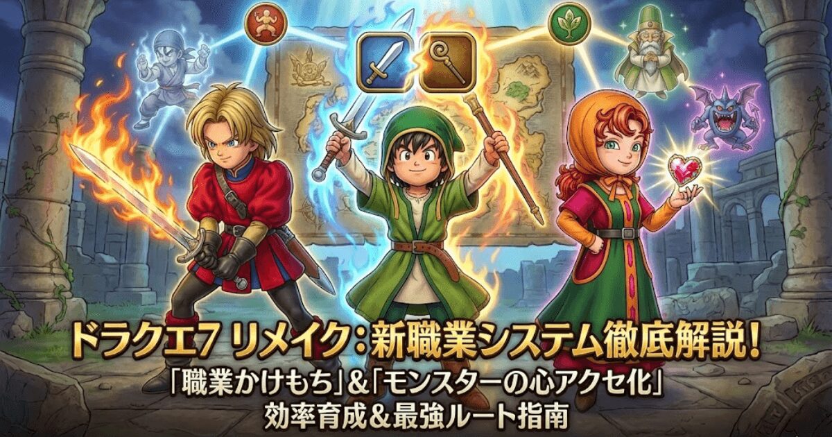 ドラクエ7リメイクにおける「職業の組み合わせ」は、もはや単なる遊びではない。限られた時間の中で、いかに効率よくキャラクターを完成させるかという、我々プレイヤーへの挑戦状だ。新仕様である「かけもち」と「心のアクセ化」を理解し、最短ルートで最強のパーティを構築してほしい。石版の先の、あの広大な世界を迷いなく駆け抜けるために。具体的なステータス推移については、引き続き当サイトの完全ガイドで追いかけていく。