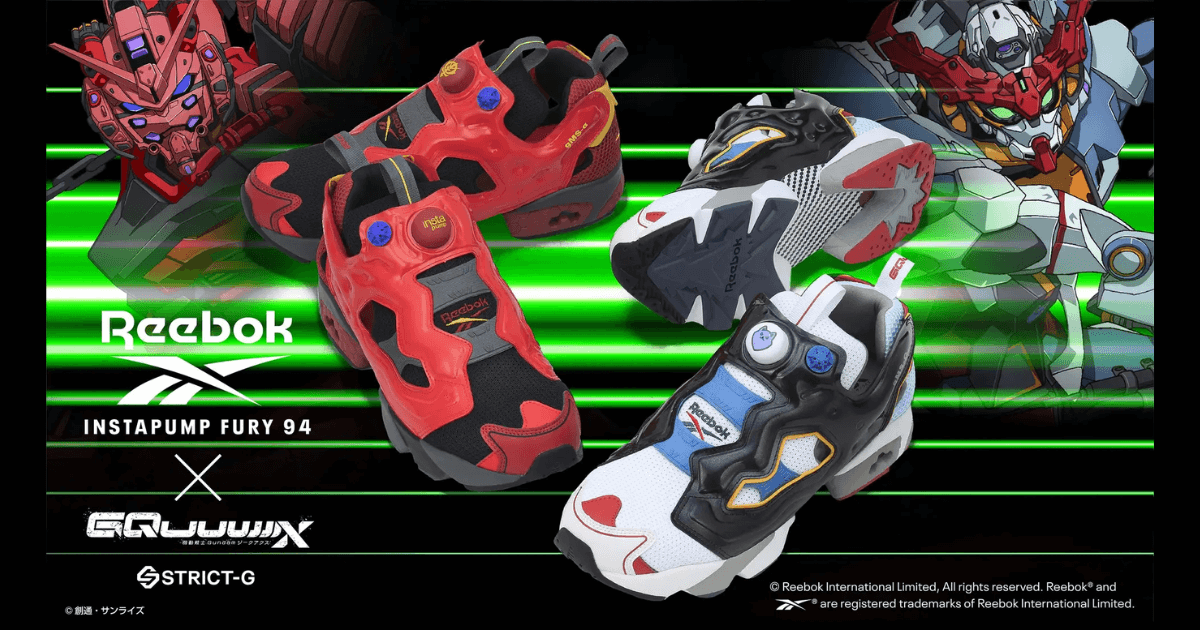 ガンダムアパレルショップ「STRICT-G」とスポーツブランドReebok(リーボック)が初コラボ!『機動戦士Gundam GQuuuuuuX』デザインの「INSTAPUMP FURY 94(インスタポンプ フューリー 94)」2種が発表されました。
