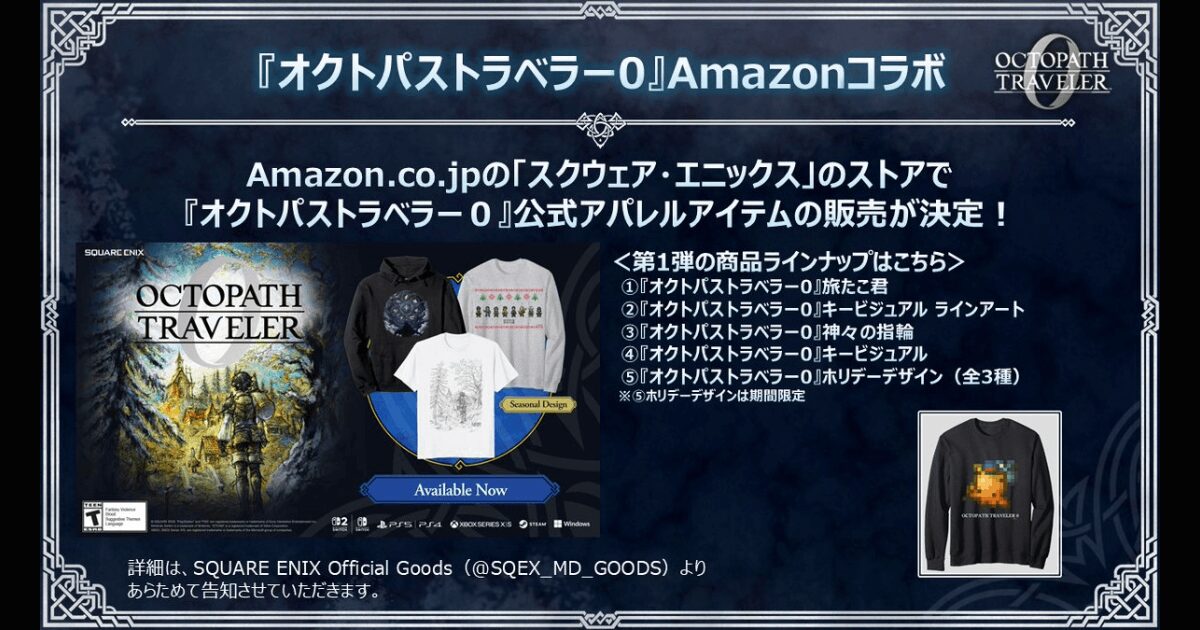 【速報】『オクトパストラベラー0』Amazonコラボのアパレル第1弾ラインナップが公開!