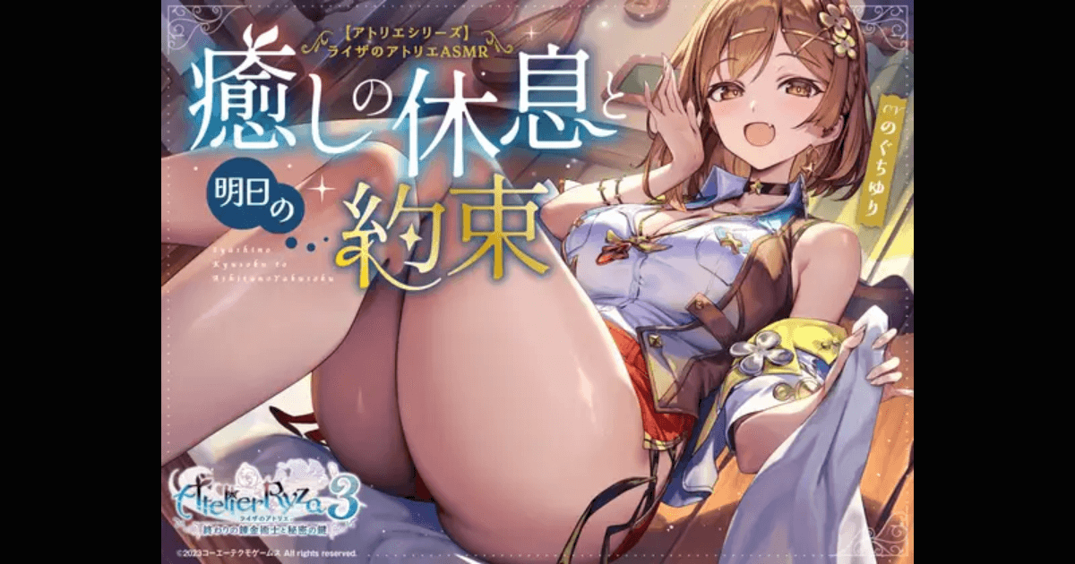 コーエーテクモゲームスからDLsiteで配信が始まった『【アトリエシリーズ】ライザのアトリエ ASMR ~癒しの休息と明日の約束~』は、ゲームの世界観を音声で深く楽しめる作品です。
