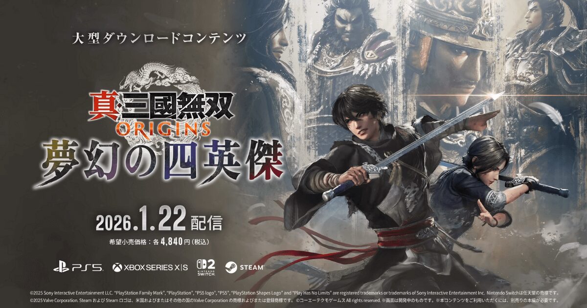 真・三國無双 ORIGINSのSwitch 2版は、2026年1月22日に発売される。