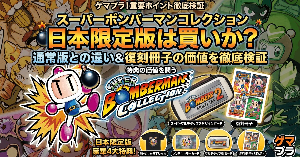 スーパーボンバーマンコレクション日本限定版は、単なる復刻ソフトの枠を超えた「思い出の再定義」です。約4000円の差額で手に入るのは、Tシャツやポーチといったモノ以上に、当時の熱狂を再び自室に呼び戻すためのスイッチです。私は、迷わず日本限定版を予約しました。皆さんはどちらのエディションを買う予定ですか?また、今回の収録タイトルの中で、一番最初に遊びたい「思い出の一本」はどれでしょうか。あの頃の放課後の続きを、みんなで語り合いましょう。